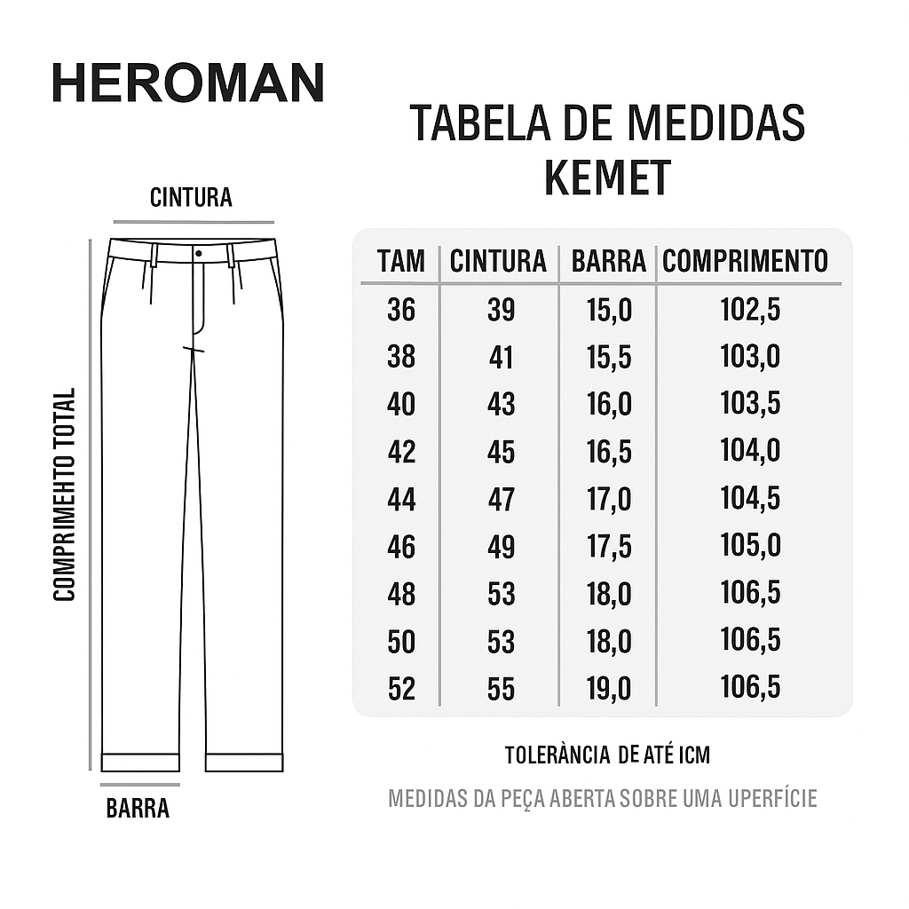 Calça Kemet — modelagem moderna e corte preciso, pensada para quem valoriza elegância e funcionalidade. Confeccionada em tecido de alta qualidade, possui bolso relógio frontal que adiciona um toque clássico e sofisticado ao visual. Versátil, transita facilmente entre o casual e o social, garantindo conforto e estilo em qualquer ocasião.